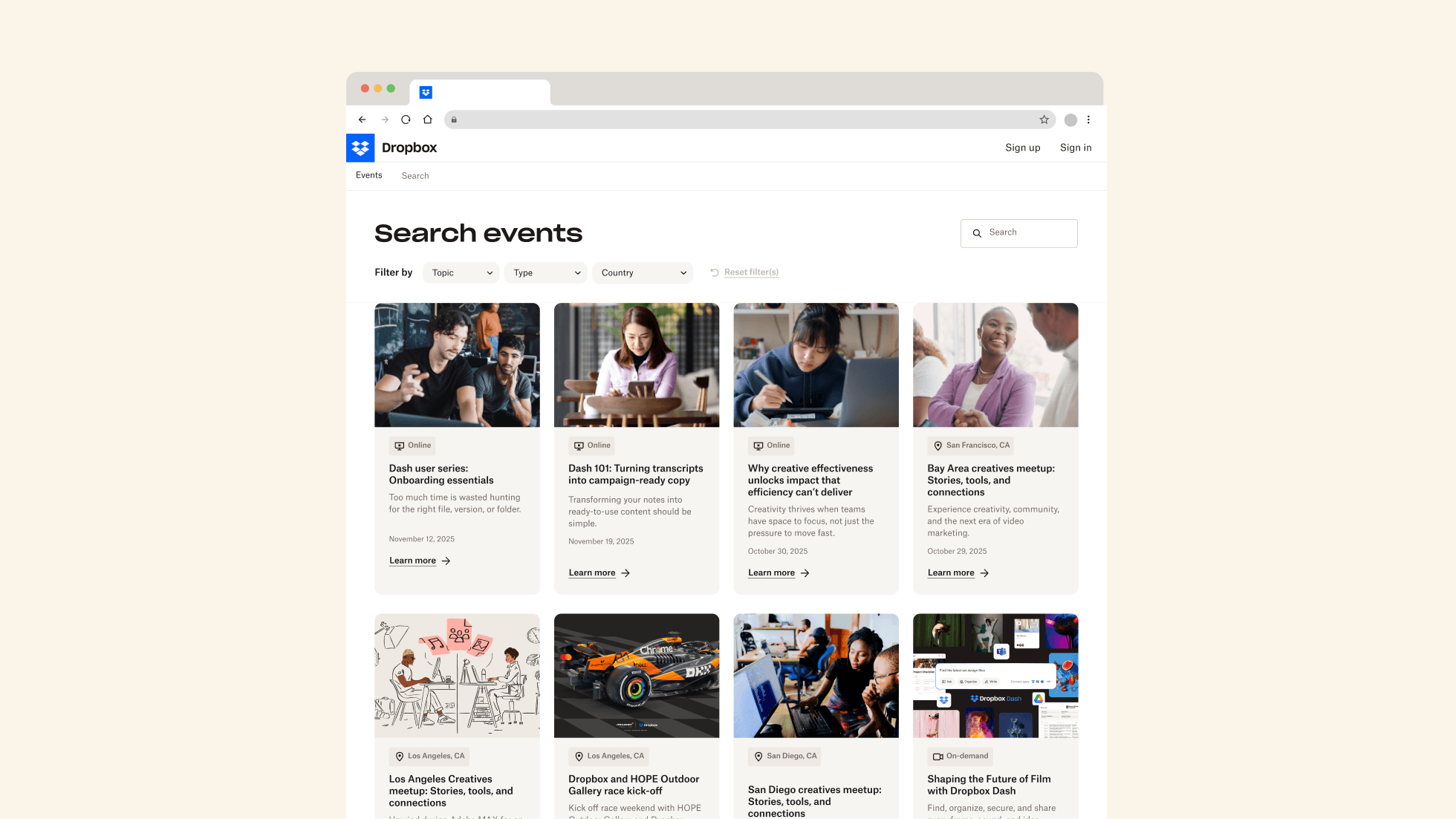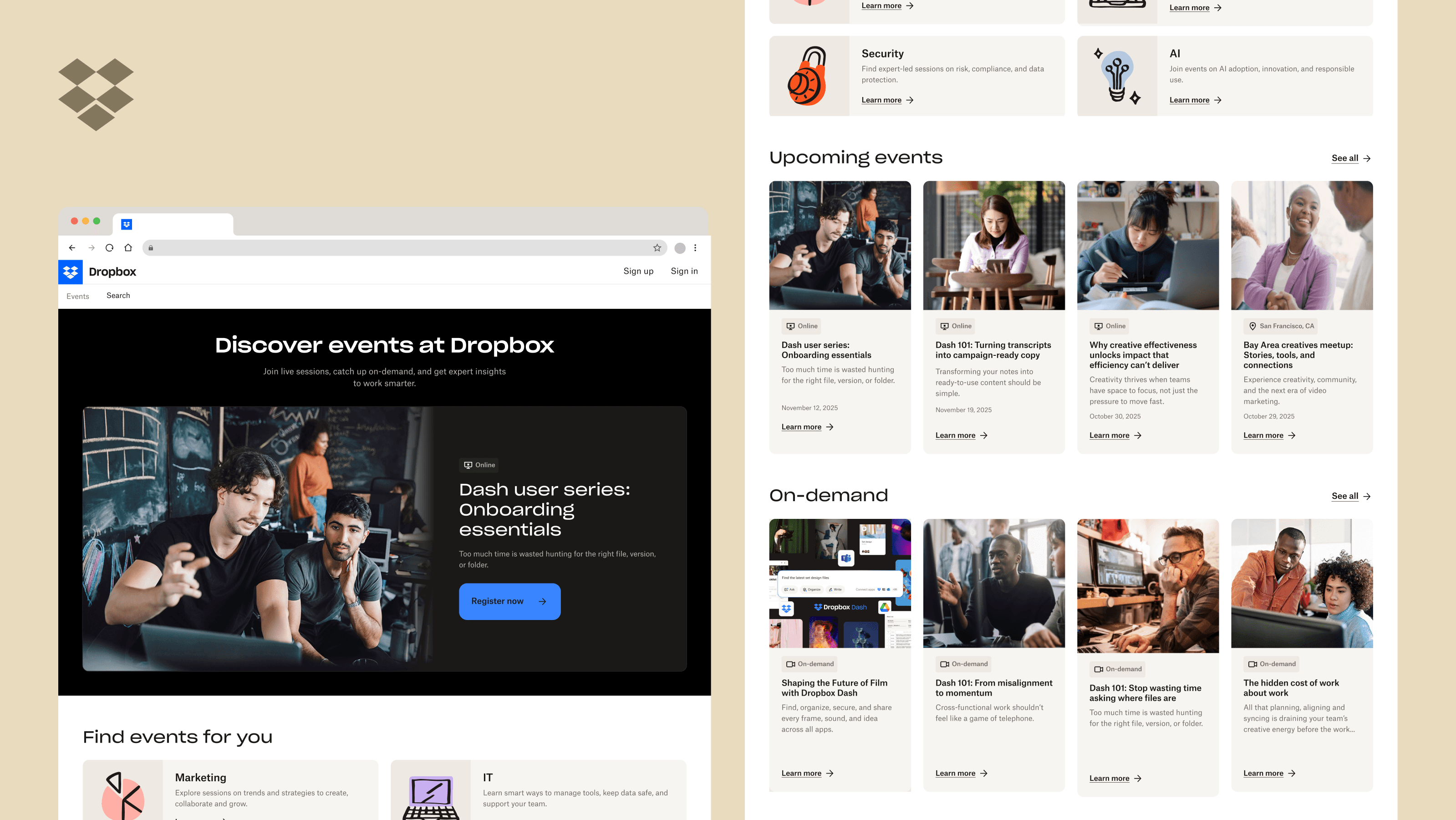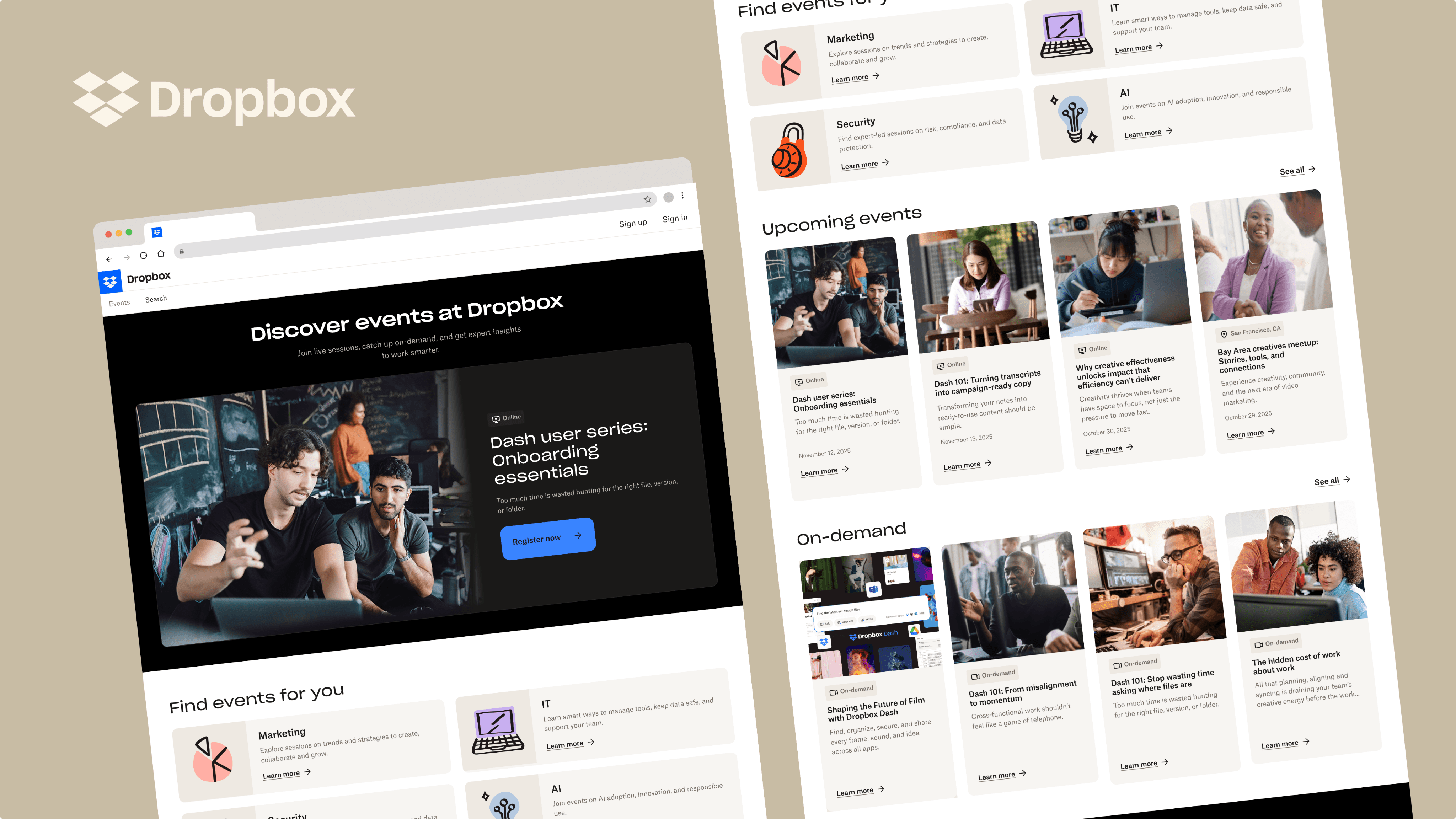 Each year Dropbox hosts or attends dozens of global events, but customers and prospects weren’t aware. Research showed that they prefer to learn about new concepts or products through events and on-demand content. This signaled a major untapped opportunity to close the knowledge gap.