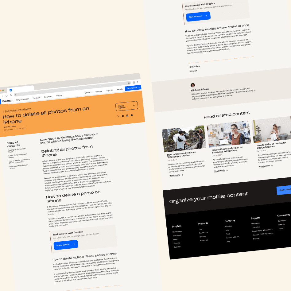 Launched new Dropbox Resources Hub, driving $299K+ in revenue by migrating content to increase acquisition.