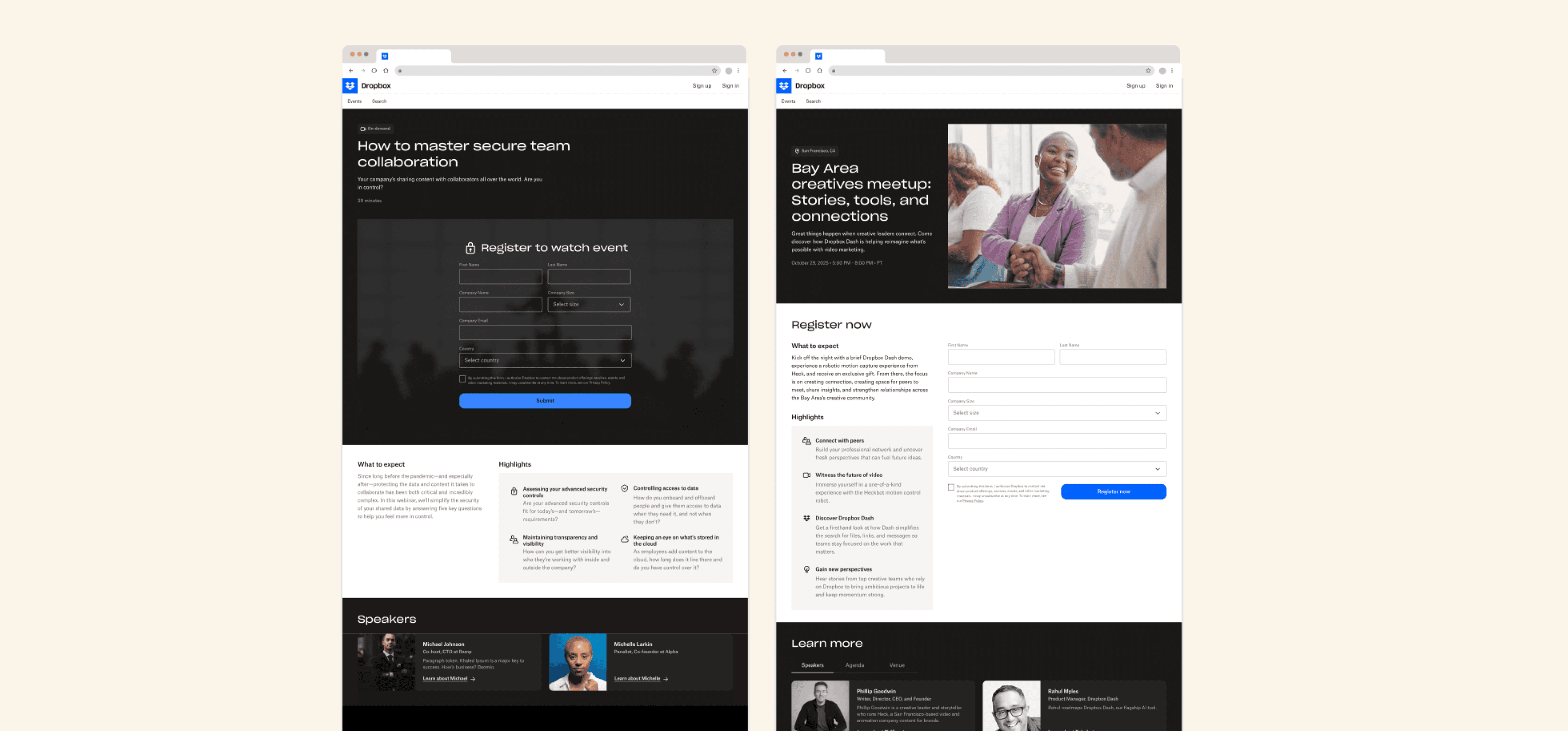 Led design of Dropbox’s first events microsite, surpassing goals with 1,800+ registrations and 95+ qualified leads.