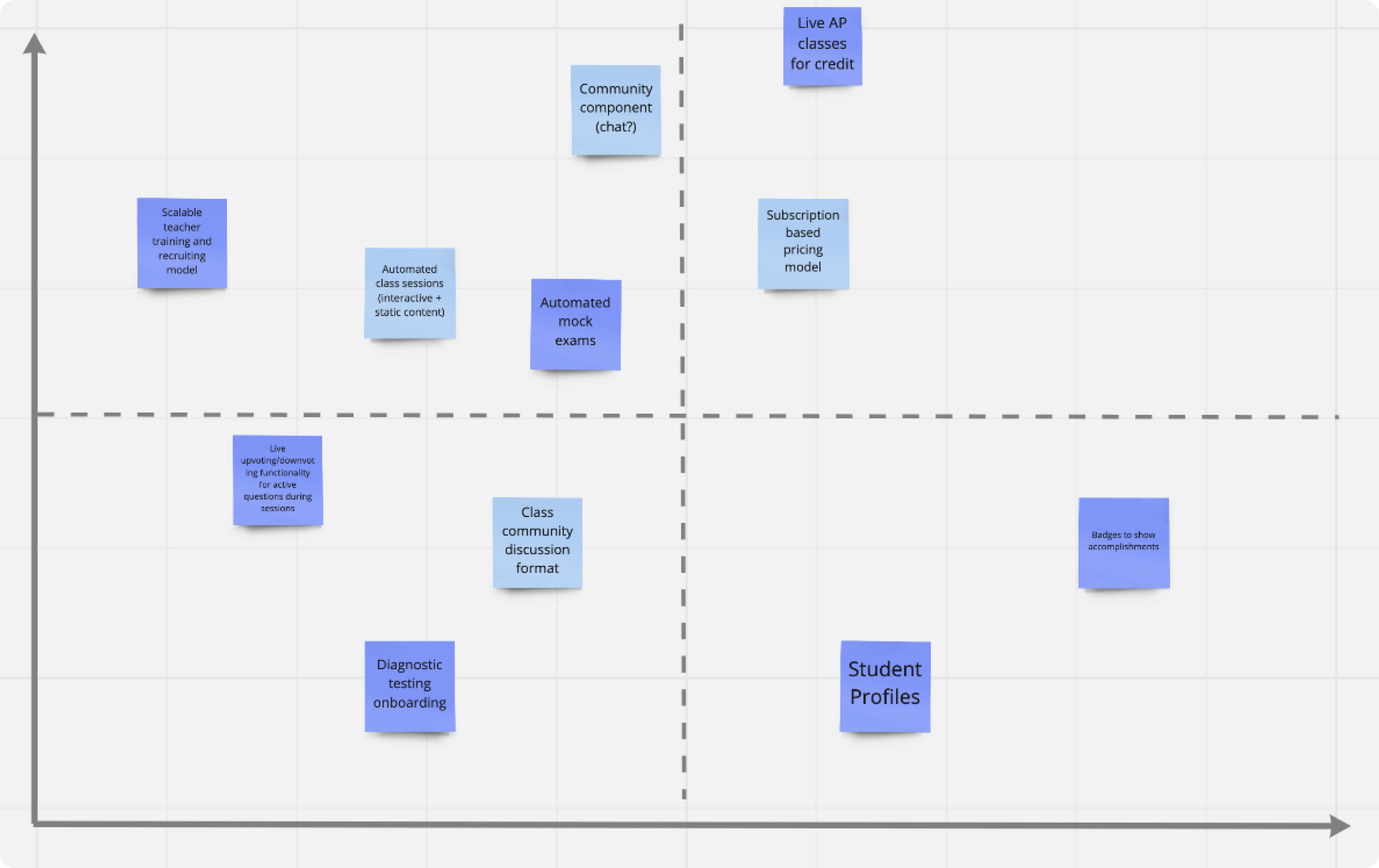 After the team brainstormed initial design directions, we completed an impact-effort matrix. This helped determine what to prioritize for MVP: