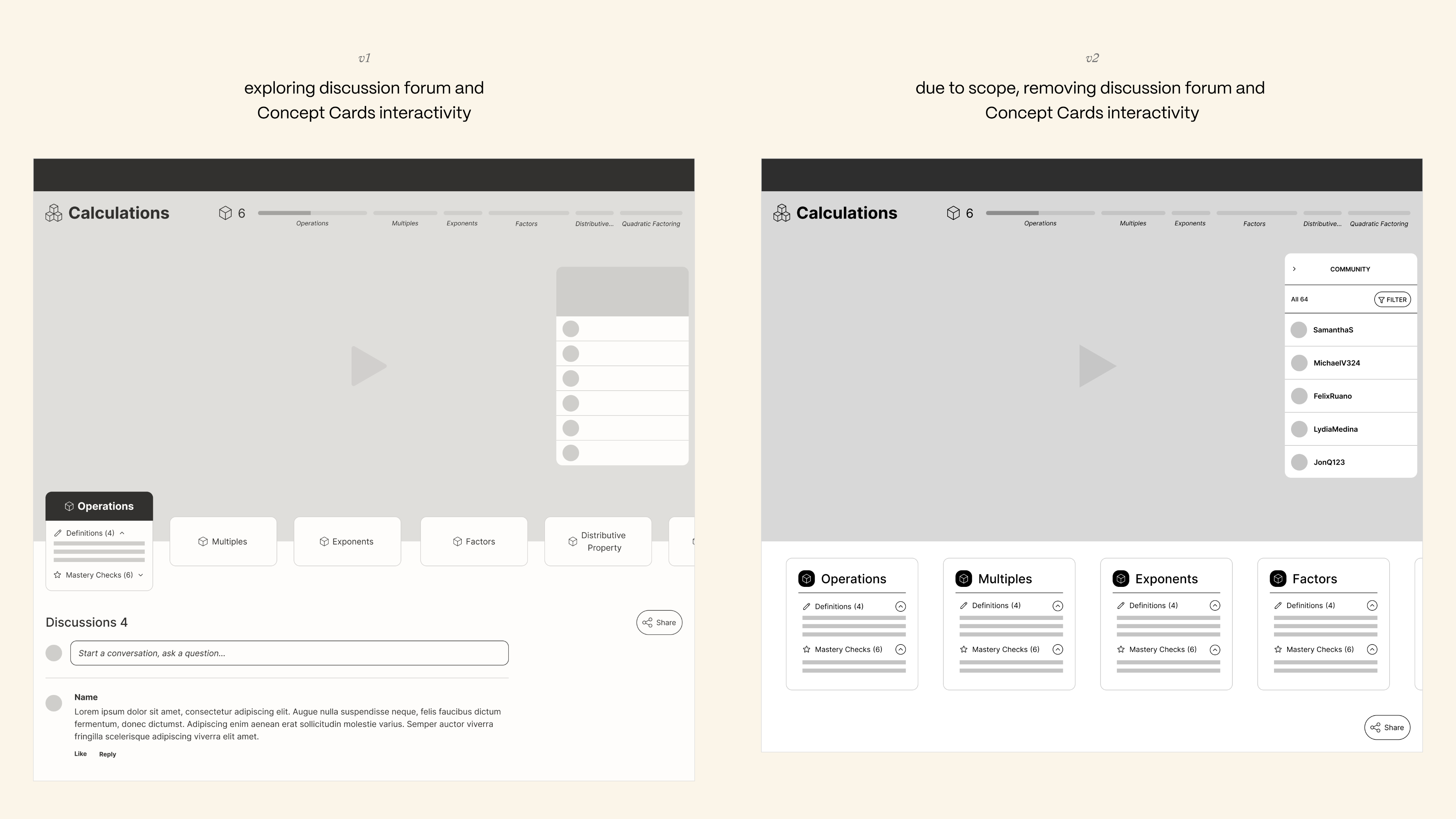 Our goal with early iterations was to pare down features, to accommodate limited engineering capacity. Specifically, we backlogged ideas for a community discussion forum, and card autoplay feature.