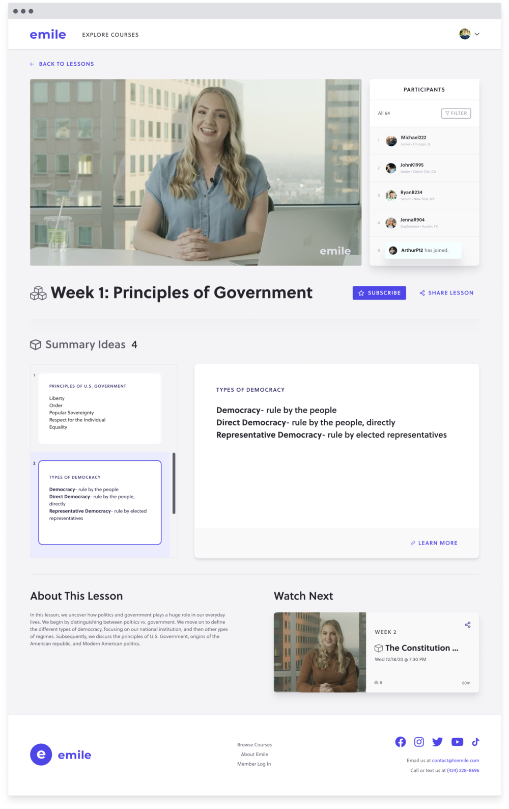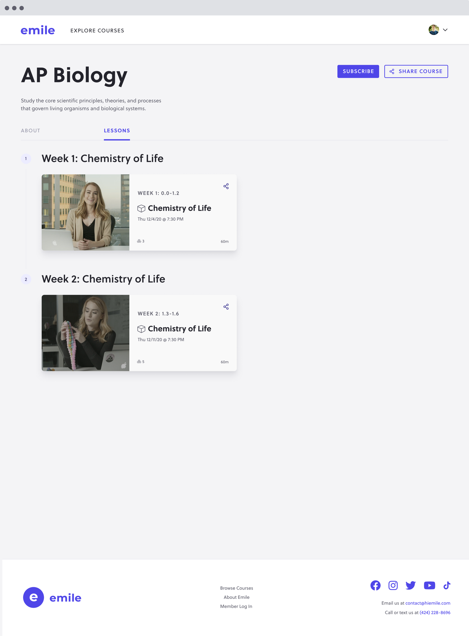 Emile’s lesson archive would help users access previously-recorded lessons and view upcoming lessons. The goal is to improve discoverability and accessibility of Emile content.